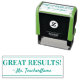 This positive rubber stamp design features the positive feedback message "GREAT RESULTS!" and a personalised educator name. It could be used by a teacher, educator, or tutor when marking assignments, to indicate that the student has done a great job.