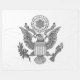 This design features a black-and-white illustration showing the Great Seal, which is one of the principal national symbols of the United States of America. First used in 1782, the seal is used to authenticate certain documents issued by the federal government of the United States. It shows the coat of arms of the United States, which features a bald eagle holding an olive branch, symbolising peace, and a bundle of thirteen arrows, symbolising war. Since 1935, the Great Seal has appeared on the reverse of the one-dollar bill. The coat of arms is also used on many official documents such as United States passports, military insignia, embassy placards and various flags.