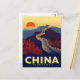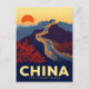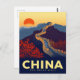 Celebrate the timeless wonder of The Great Wall of China with this dramatic, vintage-style postcard. The design captures the winding wall and a watchtower set against a backdrop of mountains and vibrant red foliage, all under a striking sunset or sunrise sky. This travel poster is perfect for history enthusiasts, travelers to Asia, and anyone who appreciates iconic world landmarks. Ideal for sending greetings, keeping as a historical keepsake, or framing as striking wall art.