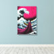 A modern twist on the Great Wave featuring a poised Japanese woman in pink. A striking blend of classic ukiyo-e and bold colour contrasts for art lovers and collectors.