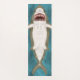 How often do you get to do a downward dog on top of a Great White Shark? This funny novelty yoga mat has a hand-drawn shark with plenty of pointy teeth, swimming along on a blue / sea green ocean background with bubbles and the silhouettes of fish trying to escape. Relax into child's pose on this jawsome double-sided mat. TIP: You can also "customise / personalise" if you want to add your name or other text or rearrange / resize the shark.