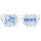 Great White Shark Colourful Sea Animal Custom Party Shades Novelty Sunglasses. Background colour can be customised. What's the best week of the year? That's right... all shark geeks know the answer. A fun gift for a fisherman, shark researcher, oceanographer, shark biologist, ichthyologist, shark lover and marine biologists. Colourful Great White Shark art done in my abstract stylised slices of colour style in shades of azure, sapphire, midnight, royal, cobalt, lapis, indigo and cornflower blue.