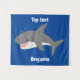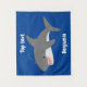 A happy, hungry great white shark is swimming in the ocean. Drawn in cute cartoon illustration style on a blue background for a fun day!