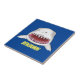 A mean great white shark cartoon comic style illustration for ocean fun.