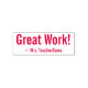 This positive rubber stamp design features the message "Great Work!" and a custom tutor's name. It could be used by a teacher, educator, or tutor when marking assignments, to acknowledge that the student has done a great job.