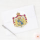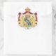 The greater coat of arms of Sweden consists of a man shield coloured in azure, quartered by a cross and divided into four shields, and an inescutcheon containing the dynastic arms of the Royal House. The main shield has a royal crown on top and is surrounded by the insignia of the Order of the Seraphim.