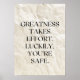 Greatness takes effort. Luckily, you’re safe. Poster