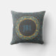 Vintage / Distressed design features background of chalkboard grey with blue polka dots, round frame with gold Grecian flourishes and a centre for adding your personalised monogram, name or other text.