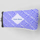 Golf head cover features the Greek flag and the word, GREECE, below in blue, tiled diagonally for an artistic look. The flag shows blue and white stripes with a blue and white cross in the upper right area. A white fractal space of squiggly squares holds a spot for your name, in blue letters, to personalise this golf head cover or create a customised gift. Great for celebrating Oxi Day (Ohi or Ochi, too).
