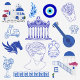 A minimalist design of Greek elements in shades of blue and white, perfect for travel lovers.