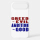 Large dark red letters read, "greed is evil". Large dark blue letters read, "ambition is good". Make your voice heard! It is ambition that makes us a great nation, and greed which destroys it. And a wonderful philosophy.