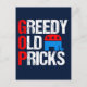 This Anti GOP design stands for Greedy Old Pricks in this funny Anti Republican party design featuring the conservative elephant in red, white, and blue. Democrats will love this humour.