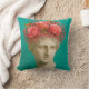 Colorful Greek Ancient Pillow. Pink roses and turquoise background.