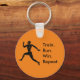 A round orange key chain with a graphic of a running Greek Athlete with the words "Train. Run. Win. Repeat." Definitely the universal winning formula for any runner, or sportsman, for that matter.