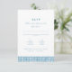 This simple but chic RSVP card features elegant blue type and a tile pattern perfect for a destination wedding - especially a Greek wedding! With tiles in shades of Grecian blue, it evokes feelings of an island but also works well for other tropical destination weddings. This simple RSVP card can be customised with your own "yes" or "no" wording along with menu selection and room for guests to write all the names of those attending. This design coordinates perfectly with the Lea Delaveris Design Tile Frame Greek Blue destination wedding collection.