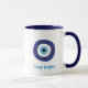 Evil eye symbol (Mati). Protection from curses. Custom text on both sides.