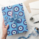 Evil eye symbol (Mati). Protection from curses. Seamless pattern. Custom background colour.