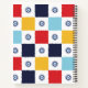 Colorful, bright squares, dark blue, sea blue, red, yellow, a Greek eye on the white patches.