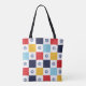 Colorful, bright squares, dark blue, sea blue, red, yellow, a Greek eye on the white patches.