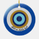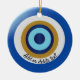 Ceramic ornament Greek eye design. You can customise this ornament with the name of your favourite place in Greece or any other text of your choice. Should you require any help with customising then contact us through the link on this page. Greek eye design personalised ornament