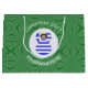 Large gift bag features a black haired angel wearing the flag of Greece for holiday gift decorating or Christmas decor. The Christmas angel is found inside a white circular fractal of squiggly squares. The background is a green fractal of squiggly squares. Add your own text or personalise with a name and the year. Share your Greek heritage this holiday season.