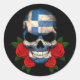 Greek Flag Skull with Red Roses Classic Round Sticker
