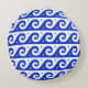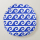 Greek Fret, Mediterranean Wave Pattern, Blue Round Cushion