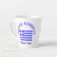 Personalized design shows the Flag of Greece and the words GREEK GODDESS above, in blue letters on two sides of a small latte mug. Add a name underneath to personalize your mug or create a customized gift. Fun for Greek-Americans, Greek Canadians, or anyone with Greek heritage, ancestry or culture. YIASSOU! The flag is blue and white stripes with a blue cross on a white background in the upper left area.
