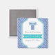 Blue Greek key and column wedding Save the Date magnet. A stylish Greek key or Greek fret or meander pattern design in blue, aqua and white, a blue and turquoise Greek column and your grey text in a frame with an aqua banner. Modern yet with a vintage look in a sense. This elegant with classic elements from ancient Greece design is a completely customisable template and is part of a wedding set perfect for a destination summer Geek or Grecian wedding.