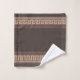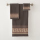 Meander Elegant, classical Greek key border ornament design with geometrical stripes decoration on dark brown background