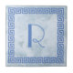 Classic Greek key design. Replace placeholder letter with your initials. Blue.