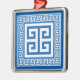 Metal ornament with Greek key (Meander) pattern elegant white and blue design with key border to match. This design of the famous and popular Greek pattern of the continuous line can be edited to change its colour if you like. You can also change the background colour of the design by editing it.
