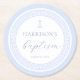 Greek Key White Blue Baptism Round Paper Coaster
