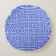Greek Meander Key Square H Pattern Blue Round Cushion