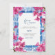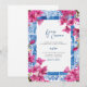 This wedding invitation features a painting of the mediterranean greek with blue and pink flowers. Easily edit *most* wording to meet your event needs. You can change the background colour and add your own photo to the backside.