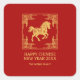 Greek Ornament Frame Golden Horse Pattern Red Square Sticker