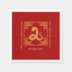 This elegant New Year pattern design features a gold Chinese snake with a Greek ornament frame on a red background.