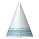 Greek or Roman Toga party hat featuring a minimalist Greek meander pattern in blue. Customisable product for a memorable celebration. Perfect for your Ancient Greece or Ancient Rome-themed weddings, engagements, graduation parties, anniversaries, save the dates, bachelorette and birthday parties.