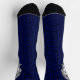 Greek pattern in blue and black Crew Socks. A greek goddess on one side!