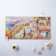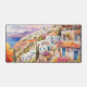 Colourful landscape of a Greek village for desk mat, made in watercolor style.