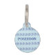 This pet ID tag is inspired by the Greek god of the sea, Poseidon. The serene blue background and the wave pattern encircling the edge are reminiscent of the ocean's waves. The name, written in a font that has an ancient feel to it, complements the mythical theme. This tag would be fitting for a pet who has a strong presence or is named after the deity.