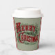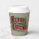 Green and red 1876 Merry Christmas Paper Cups for holiday parties.