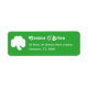 Custom, personalized, green shamrock Irish three leaf clover, St. Patrick's Day simple, elegant, return address label. Simply enter your name / family name / company name, and address. Perfect for both, home and business, personal and official mailings. Elegant return address labels for use on St. Patrick's Day, birthday, wedding, marriage anniversary, graduation, bridal shower, baby shower, holidays, or any other Irish special occasion related mailings of the family.