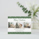 Create cute green photo Christmas postcards featuring a starry green background with 3 photos in the centre and a beautiful hand-lettered script title. Easily personalise this green Merry Christmas postcard with your images, message, a family name and the year. You can also personalise the font and change the colour of the text and the background as well.