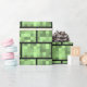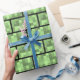 This wrapping paper design features a brick-like pattern with a style reminiscent of that of classic 8-bit video games. It features different shades of green.