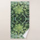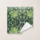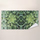 This set of bath towels features an abstract pattern of an exotic cactus pattern. Green and white spines radiate in a circular design on a black background.