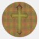 My original digital designed artwork is featured on this sheet of pretty stickers, consisting of a vintage abstract diamond stripe pattern in the background, in green and rust colours, and a vintage style illustrated Cross of Faith in front in rustic green tones. These are small round stickers with 20 per sheet with vibrant colour quality. You may also option to the large 3-inch stickers if desired. They would make great envelope seals or gift bag seals for church and at Easter.