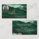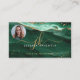 Modern, stylish professional business card with green agate and marble with faux gold glitter sparkle accents personalised with fancy handwritten script monogram initials with swashes and name and your photo. ASSISTANCE: For help with design modification or personalisation or if you would like coordinating items, contact the designer BEFORE ORDERING via the Zazzle Chat MESSAGE tab or email makeitaboutyoustore@gmail.com.