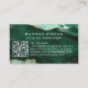 Modern, stylish professional business card featuring green agate and marble with faux gold glitter sparkle accents personalised with chic, elegant calligraphy script monogram initials and name on the front and your custom contact information, including your QR code on the back. CHANGES: Change the text font style, colour, size and placement by clicking on EDIT. ASSISTANCE: For help with design modification or personalisation, colour change, resizing, transferring the design to another product or if you would like coordinating items, contact the designer BEFORE ORDERING via the Zazzle Chat MESSAGE tab below or email makeitaboutyoustore@gmail.com.