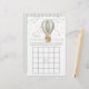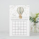 Sophisticated classic "Bingo" game designed for a baby boy shower, adorned with a charming teddy bear flying with sage green hot air balloon and message 'Adventure waits'. Engage your guests with this delightful game, perfect for adding fun and excitement to your celebration while creating cherished memories.